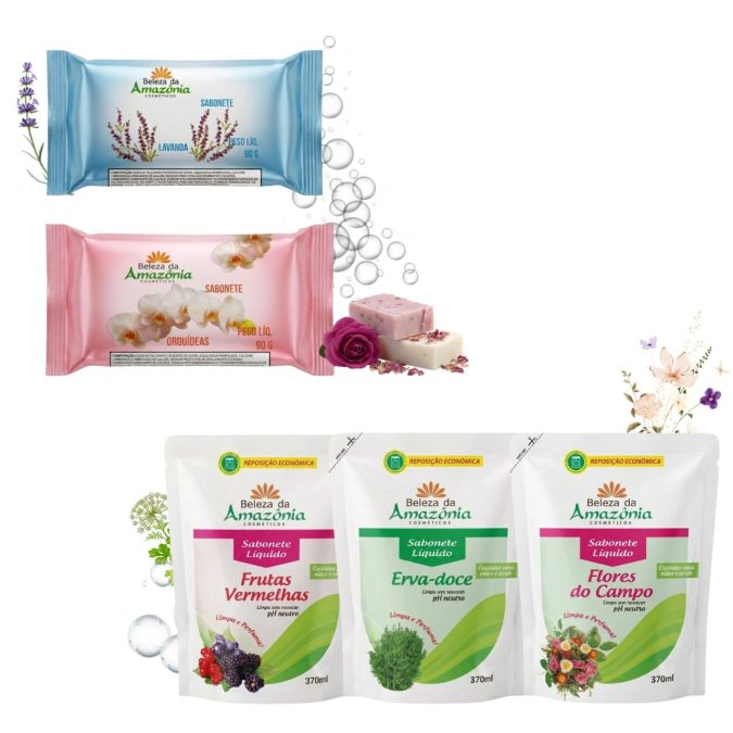 • Sabonete Barra 90g e Sachê 370ml